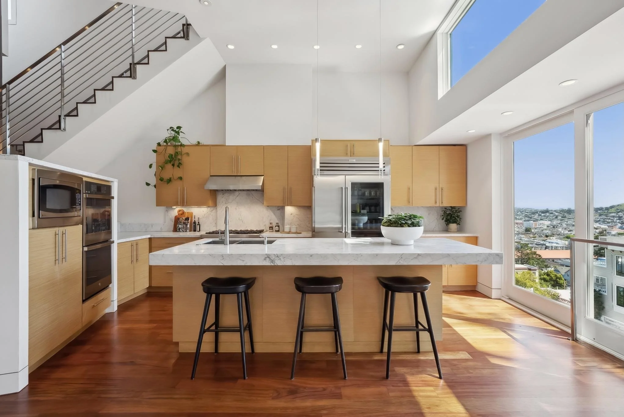 Set in the Dolores Heights neighborhood of San Francisco, 332 Hill Street is a sophisticated modern residence (rebuilt in 2005) that celebrates light, space, and sweeping views. This architectural three-bedroom, three-bathroom home exemplifies contemporary design at its finest.